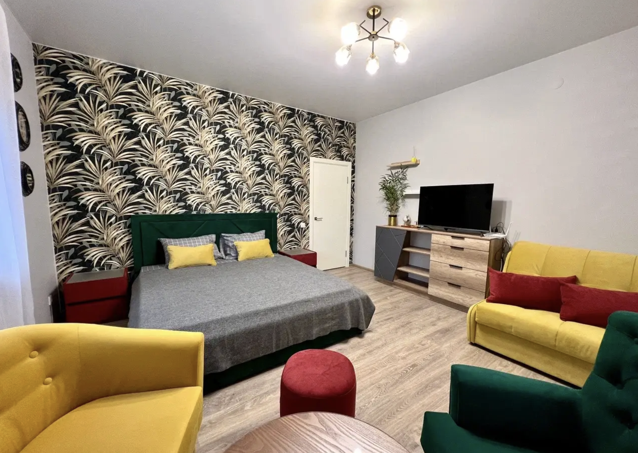 Вся необходимая мебель и техника недорогая, спальные места диваны, реже кровати. Полная комплектация квартир.